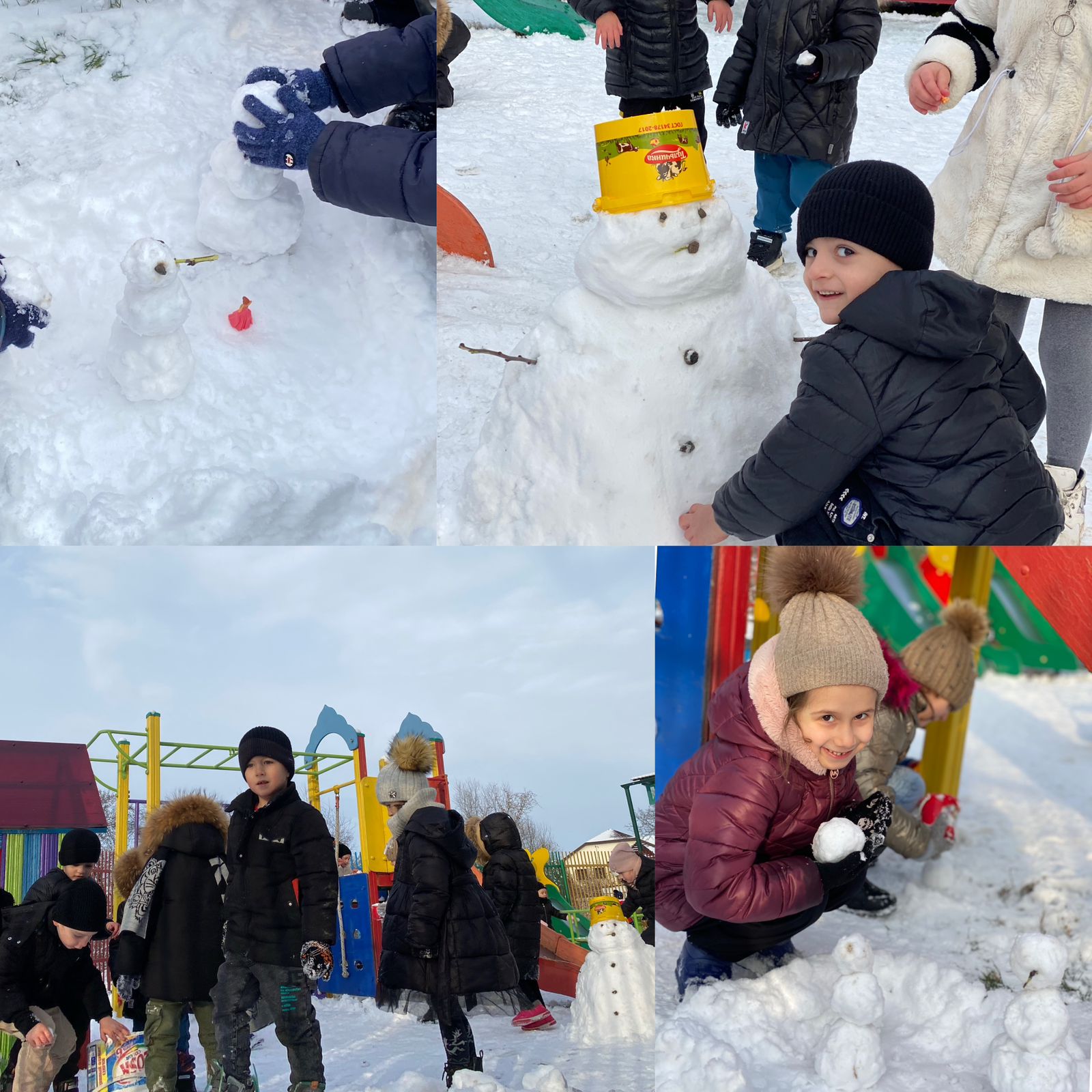 Весело лепили из снега различные снежные постройки, играли в снежки.